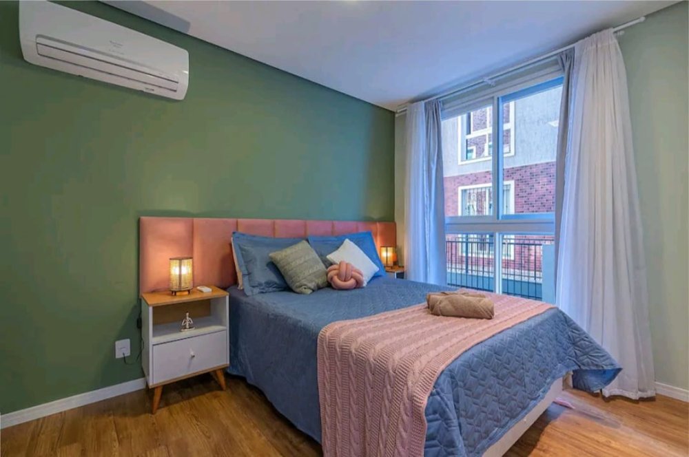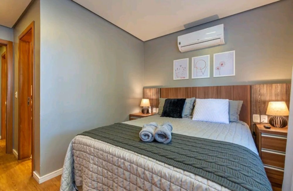 - 2 Dormitórios, sendo 1 suíte com cama Queen, ambos com split instalados;