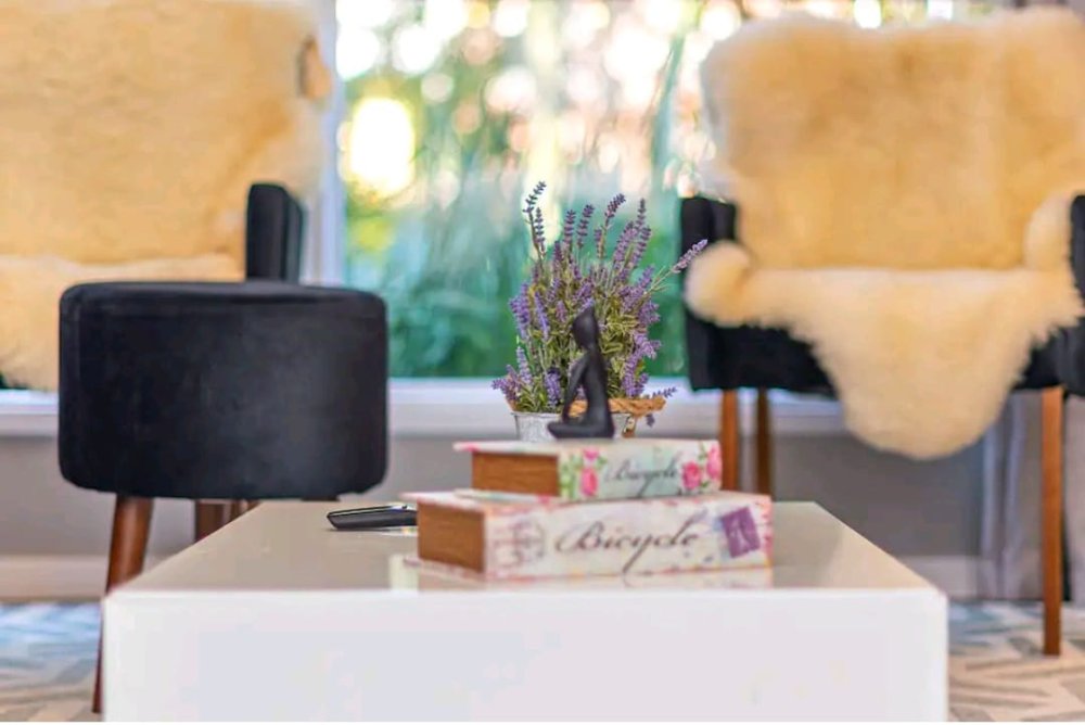 - Smart tv na sala de 50 polegadas e na suíte de 32 polegadas;