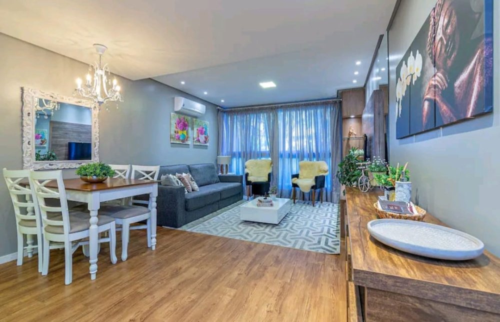- Apartamento 100% mobiliado e decorado;