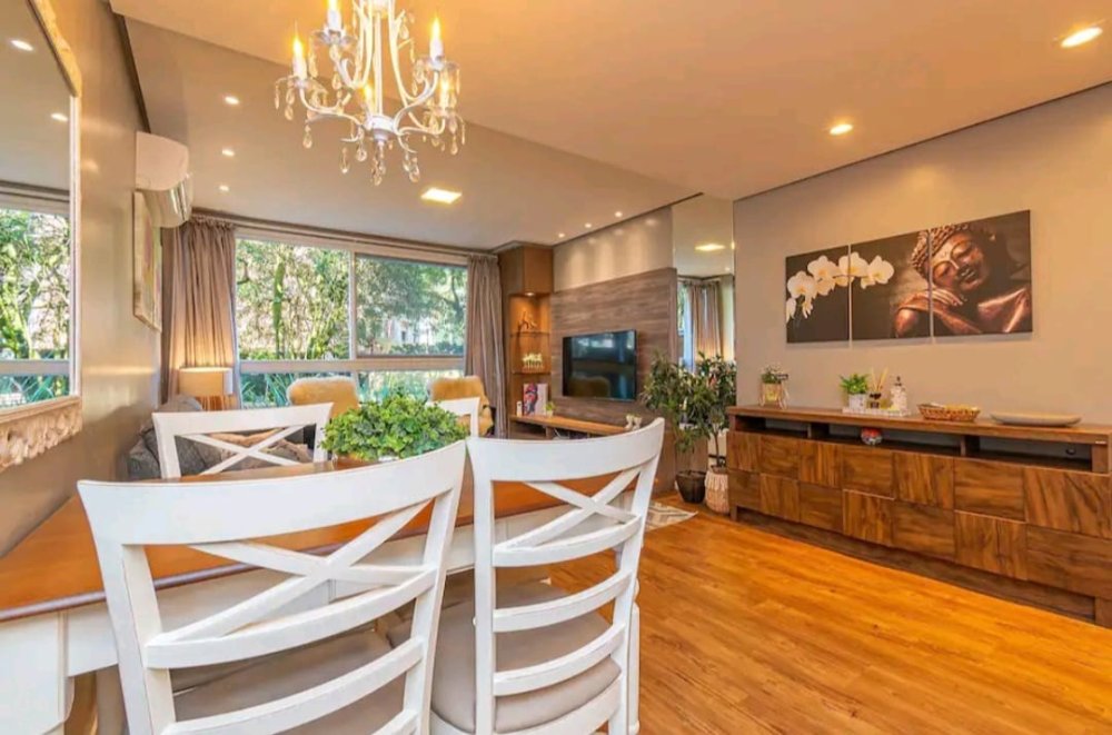 - Mesa de jantar, com cadeiras e banquetas para bar;