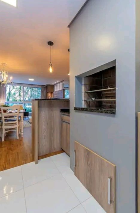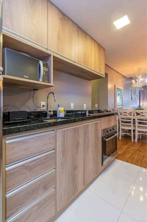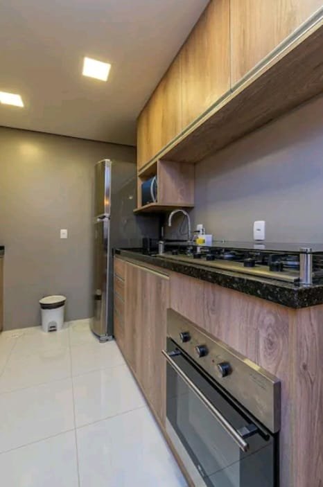 - Cooktop, forno elétrico, microondas e geladeira duplex;